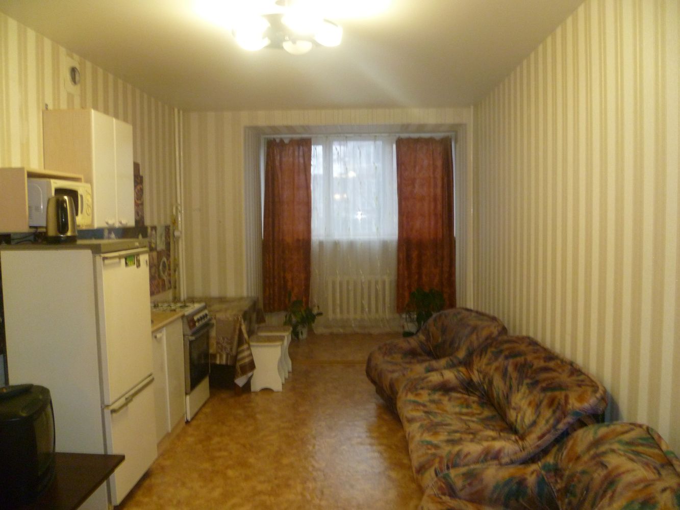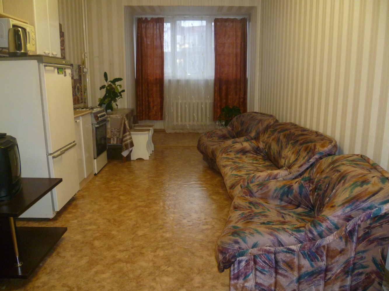 Прихожая, два двуспальных дивана, металлическая дверь, домофон, утюг с гладильной доской, посуда и принадлежности, постельные принадлежности, трансфер за доп.плату.